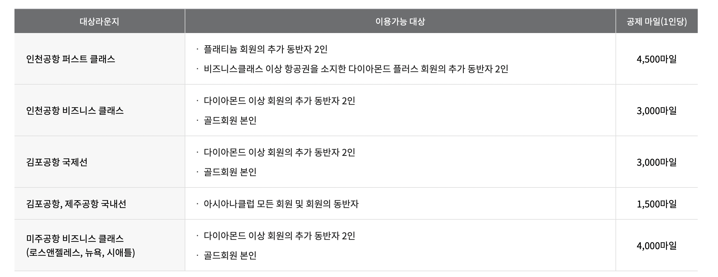 예를 들어서, 평수기에 제주도를 왕복으로, 일반석(이코노미석)으로 다녀온다고 하면 10,000마일이 드는 것입니다. 만약 도쿄를 성수기에 다녀온다고 한다면 45,000마일이 들겠네요.