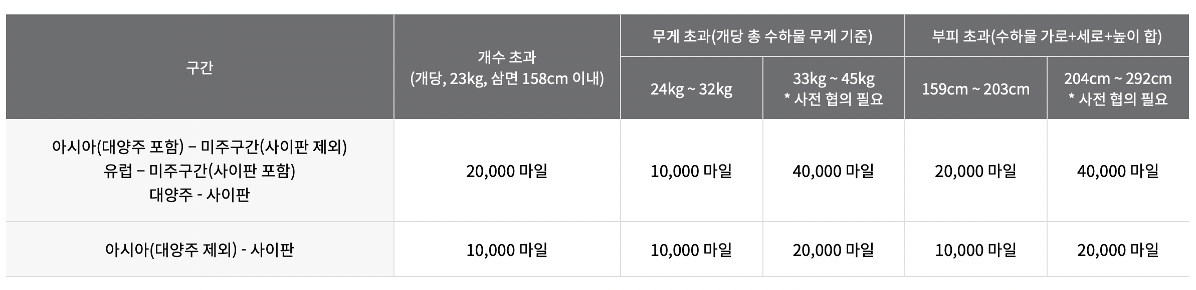 위 표에 따른 마일리지는 "왕복" 기준 입니다. 그리고 단순히 표를 예약하는 것입니다.